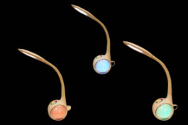 這反映的是功能越來越傾不局限于照明,而是將燈飾變成一種裝飾品,賦予它美學特質,陪伴在人們的身邊。裝飾大于照明,將美學功能發揮到極致,這樣的燈飾要么簡到極處,要么繁到妙處,總會給人驚喜。如萬隆匯洋恒輝陽光旗艦店的一款餐吧燈,僅用一片經過養化的鋁板做燈架,四周嵌以LED光源,不做任何華麗的裝飾,讓人想象這是小時候坐過的搖籃或者是蕩過的秋千,卻美得讓人心動;萬隆匯洋昊琪燈飾的一款餐吧燈,則專門將燈源下部變成紅酒杯架,一個個倒懸的紅酒杯可以隨時取用,在此燈下就餐,也就增添了酒醇飯香的美麗情懷;萬隆匯洋泰昌陽光展廳的一款臺燈,模仿一根自然纏繞的藤蔓,又像是美女扭動的腰肢,美態十足,裝飾性遠超過照明功能。