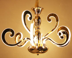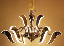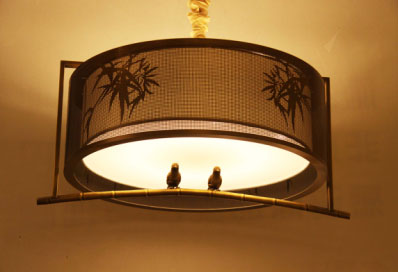 這反映的是造型盡可能地向自然靠攏,從大自然的真實景物中獲得靈感,或抽象或寫實地運用于燈飾造型中,使燈飾充滿自然格調,讓人們的居室與自然近在咫尺。自然總是人們的向往,燈飾融入自然元素,也就變得更加巧妙。如萬隆匯洋麗高家居館的田園燈飾系列,將發光體支撐部分做成浪花或祥云形狀,或者做成葉片狀,既有起伏的美感,又有自然的風味;萬隆匯洋諾克照明展廳的一款吊燈,外形就像女士的長裙,購成長裙的燈枝燈罩燈泡又一根根伸展的樹枝,或上伸,或下伸,構成一幅自然圖景,美艷無比,甚至有一個名字叫“國色天香”;萬隆匯洋大唐照明展廳的一款餐臺吊燈,更是以金屬做成花鳥樣兒,那兩只站在樹枝上的鳥兒栩栩如生,在這樣的燈下用餐,仿佛感受到鳥語花香,何其美妙!