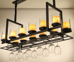 昊琪燈飾的餐吧燈,燈源下部變成紅酒杯架,倒懸的紅酒杯散發著酒香