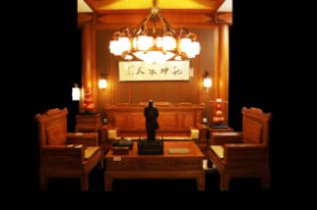 一畝地中式生活館的客廳吊燈,與紅木家具搭配成一個和諧的光影空間