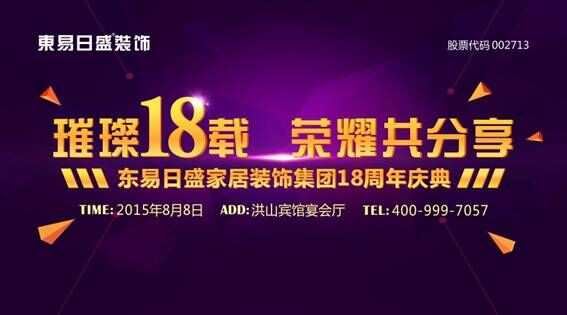 據悉,東易日盛家具裝飾集團于2015年8月8日在武漢洪山賓館宴會廳舉辦18周年慶。