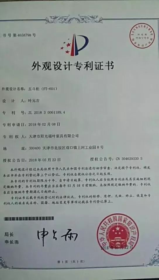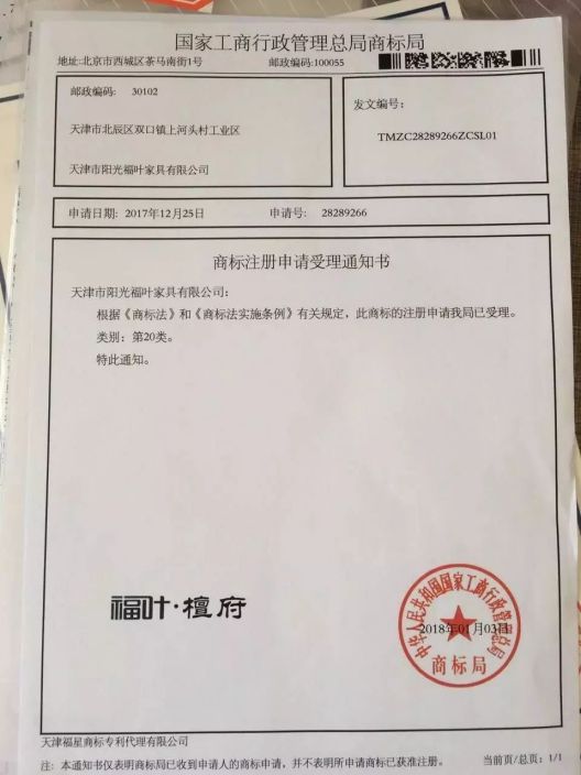 在產品開發上,福葉投入了十分大的精力,申請了所有的產品的外觀設計專利證書,著力打造更具有特點的產品。此外「福葉·檀府」的商標也受法律保護。將來福葉還將申請越來越多的專利,為福葉家居的品牌推廣確立牢靠的基礎。