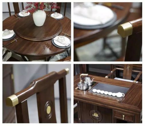 檀色調的「福葉·檀府」家具,質感細膩,釋放出安靜沉穩的力量;銅把手的點綴,為沉穩安靜的空間帶來驚喜,保證空間的每個角落都舒適而高雅。