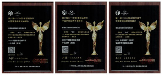 在第六屆中國家居經(jīng)銷商發(fā)展趨勢論壇上,PEAKIN品尖家具憑借突出的行業(yè)貢獻及高度的行業(yè)責(zé)任感,將“2020年度最具責(zé)任感企業(yè)”大獎收入囊中;在第八屆CFT(中國)家居品牌節(jié)暨中國家居品牌領(lǐng)袖峰會上,PEAKIN品尖家具接連斬獲“金匠獎·2020中國家居行業(yè)年度十佳品牌(實木)”、“金匠獎·2020中國家居行業(yè)年度十佳品牌(床墊)”、“金匠獎·2020中國家居行業(yè)年度受消費者信賴家居品牌”三項大獎!