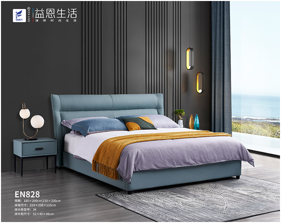 益恩家居這款EN828軟床產品——北歐系藍灰色床,款式新穎打破傳統(tǒng)的設計方式,寧靜灰色與靜謐的藍色相得益彰,與活躍的檸檬黃混搭,在視覺上給人眼前一亮,最能滿足雙子座消費群體多變、追求新意以及追求新事物的性格。床頭分層式靠背設計,充滿了立體感和設計感,不僅符合雙子座的風格,而且久坐不累。睡前時刻,人們可以依靠在床頭上,舒心地閱讀一本書籍。