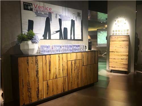 (在活動現(xiàn)場展出的Riva 1920新西蘭濕地杉木茶幾作品)
