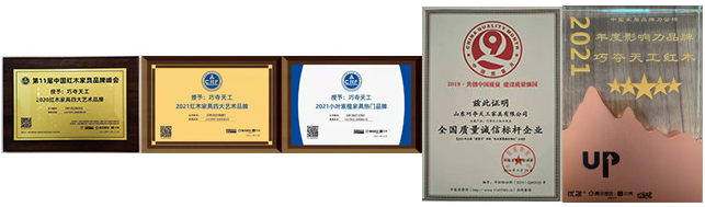 堅持品牌戰(zhàn)略。巧奪天工先后獲得“企業(yè)標(biāo)準(zhǔn)領(lǐng)跑者”“中國紅木行業(yè)最具影響力品牌”“全國質(zhì)量誠信標(biāo)桿企業(yè)”等榮譽稱號,樹立行業(yè)典范。