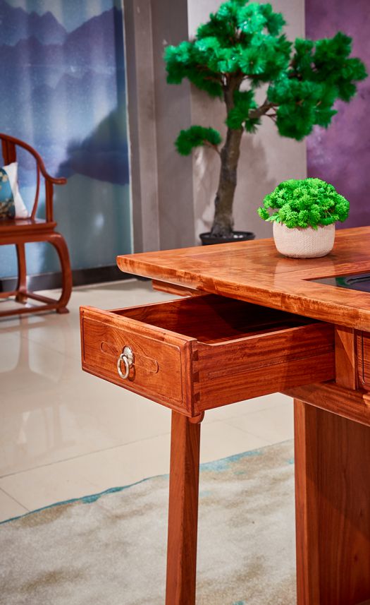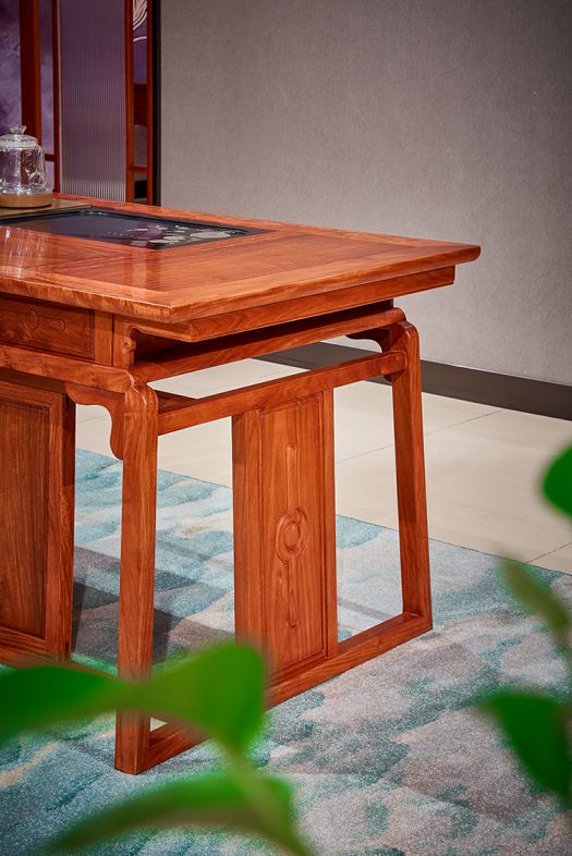 茶臺整體不采用一釘子一鐵,純榫卯的設計,使得茶臺在實際使用中堅固無比。同時更好地保護紅木的木質結構。