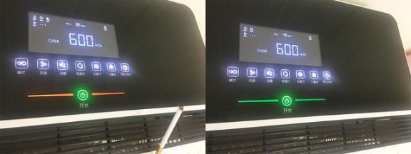 頂部的面板上有“模式、風速、消毒、氛圍燈、負離子、兒童鎖、預約/定時”七個功能鍵,電源單擊開關為開啟,長按為關閉。模式當中,還可以選擇睡眠檔、強勁檔和智能檔3個檔位。 顯示面板上除了CADR、PM2.5等常規的數據顯示,還在開關按鍵的兩側設計了一組氛圍燈,能夠直觀的顯示當前PM2.5的濃度值,并且用綠色、橙色、紅色三種不同的顏色來表示。 操控面板還很細心地貼上了操作說明。