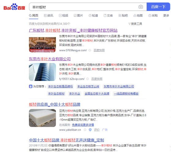 再則,我們還可通過瀏覽百度圖片、知道、文庫、貼吧等板塊的搜索結果,對豐葉板材形成一個全面、立體的認知,深刻體會這個中國板材品牌的健康環保魅力。