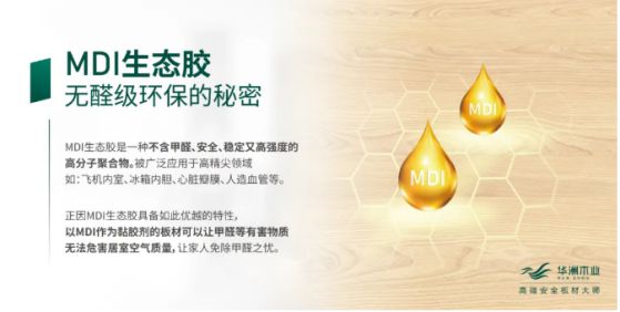 人造板的生產需要膠水來進行粘合,傳統的膠水以脲醛膠為主(內含甲醛),危害人們的身體健康。研發團隊,突破了“將MDI制成MDI無醛生態膠”的技術壁壘,徹底拿掉了板材“必含醛”的帽子,實現板材無醛添加的環保性能。