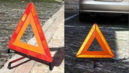 汽車三角警示牌是當你在路上需要緊急停車時,放置在車輛后方、用以提醒后方車輛的一種隨車安全配件,由塑料反光材料制成。外面有一個反光的三角,中間有一個熒光的三角,同時,底下還有一個底座。外面的反光三角是為了夜間汽車燈光照射之后能反射一個較強的光線給后面車輛的司機;里面的三角是在白天起作用,通過漫反射使司機能在白天更清楚的發現它。