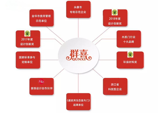 群喜門業分別設有研發、生產、營銷、售后服務四大中心,自成立至今,公司在科技和研發方面取得了巨大的成就,榮獲”浙江省科技型企業“和”金華市信用管理示范單位“的稱號。