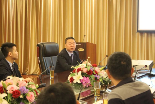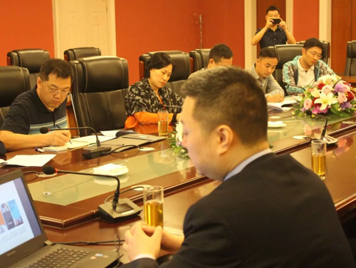 首先雙方在會議室展開會談,大客戶一部總監鄺原向考察團介紹了美心集團基本情況和企業文化,并著重講解了美心門生產實力及產品優勢,展示了投標產品工程項目代表案例。考察團一行對美心門競爭優勢給予高度肯定。
