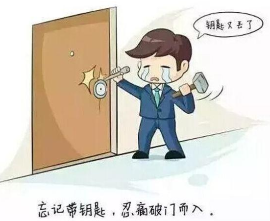 是的,沒法進屋了。樓層高,沒法從窗戶爬進去;門框是雙的,撞不下來;雙層防盜門,砸也砸不開;保險鎖是反安的,彈簧片也無能為力……