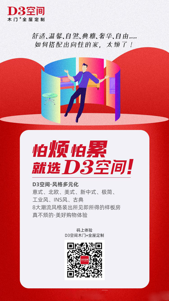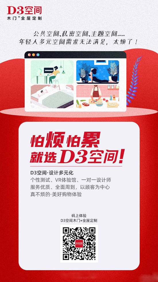正是服務(wù)能力、服務(wù)意識(shí)的齊備,讓D3空間敢于以全空間產(chǎn)品、全空間美學(xué)、全空間服務(wù)打造“空間美學(xué)+”,敢于唱響“怕煩怕累,就選D3空間”。