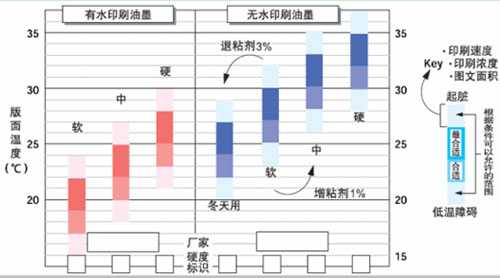 無水膠印油墨技術始于油性無水膠印油墨,后逐步發展為UV無水膠印油墨,與傳統有水膠印油墨相比,無水膠印油墨在印刷過程中不涉及水墨平衡,油墨的轉移主要通過控制膠輥的溫度來實現,這在一定程度上解決了印刷企業大量排放污水的難題。