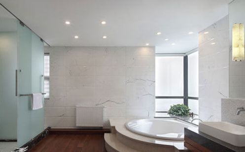浴室地板圖片3:這款浴室因為做了很好的干濕分離,設(shè)計師毫不吝嗇的鋪設(shè)了實木地板,讓寒冷冬天的沐浴時光也同樣舒適。整個空間呈現(xiàn)了最淳樸的白色和原木色搭配,同時配備淋浴間和浴缸既讓空間不顯空曠,浴室功能也更豐富起來。光源上,選擇了暖色吊燈和小射燈的組合,更節(jié)約電力,也讓光照的范圍更廣。