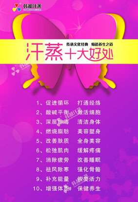 汗蒸館多是以納米、遠(yuǎn)紅外線、電氣石能量磚等為特色,通過加熱后釋放負(fù)離子、亞離子、遠(yuǎn)紅外線、礦物元素,代謝皮膚中的有害物質(zhì),提高肌膚彈性,達(dá)到美容減肥、延緩衰老的功效。而冬季汗蒸的保健作用更為明顯,因?yàn)槎竞洌旧砩眢w出汗少,人體毒素難以通過汗液排出,而汗蒸則可促進(jìn)排汗、加快體內(nèi)的新陳代謝、加速體內(nèi)血液循環(huán)、打開毛孔、打通身體內(nèi)環(huán)境,促進(jìn)健康,還可排除毒素、降脂減肥,除此之外,還可緩解關(guān)節(jié)疼痛、腸胃病等癥狀,因而可以說冬季是最適合做汗蒸的季節(jié),也是最需要做汗蒸的季節(jié)。