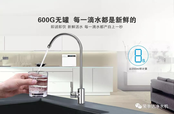 榮事達認為精致生活應當打破時間的禁錮,隨心所享。因而,為更好地滿足多樣化家庭飲水需求,600G智能反滲透凈水器最先考慮的就是“速度”。其采用的“600加侖超大通量濾芯”,出水速度約為傳統50G凈水機的12倍,200ml一杯水制滿僅需8秒,即濾即用,出水新鮮,真正享受不等待、不斷水的理想水生活。