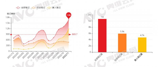 2、在企業(yè)的前期教育下,用戶(hù)產(chǎn)品消費(fèi)心智得到了一定的提升,素人筆記增長(zhǎng)較快。