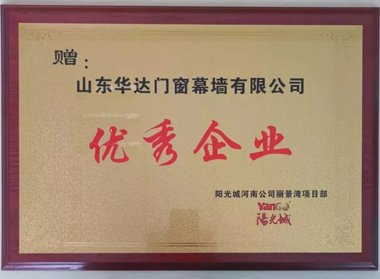 1月19日華達門窗被陽光城河南公司評為“優秀企業”