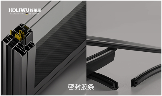 密封膠條是決定門窗氣密性的重要因素。好的密封膠條可以充分阻擋室外雨水的侵入,這是提高水密性和氣密性的利器,防風保溫擋濕必須靠它。好萊屋門窗經多重密封設計,選用優質耐用的汽車級三元乙丙密封膠條,玻外膠條阻隔98%雨水,而室內密封則阻隔空氣,讓中央密封形成等壓空腔,徹底避免因氣壓差造成水流灌入。