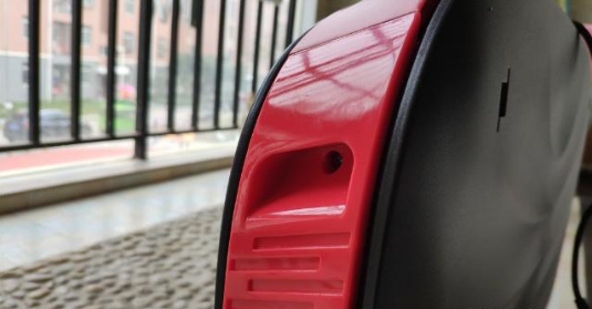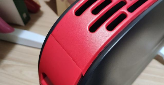 按鈕的這個(gè)部分是有一個(gè)防水的處理的,上面的按鈕部分是軟殼,下面的旋鈕部分是硬殼。這算這個(gè)部分做工最好的地方了。但是開關(guān)的按鈕還是會(huì)受到軟殼的影響。因?yàn)榕L(fēng)機(jī)整體很輕(即便是固定了滑輪還是很容易推動(dòng)),那么這個(gè)時(shí)候你需要手扶著產(chǎn)品去按,尤其使用過程中如果切換,建議是一個(gè)手扶著另外一側(cè)的塑料部分操作。兩邊的部分在使用過程是很燙的。