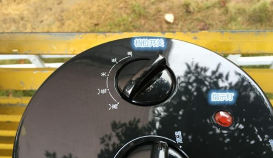 頂部兩個(gè)旋鈕,一個(gè)指示燈。左邊是微調(diào)的按鈕,溫度從低到高。右邊的旋鈕調(diào)節(jié)檔位,中間是關(guān),上下分別有高、低兩個(gè)檔位,不同的是帶弧線標(biāo)識(shí)的代表“搖頭”(風(fēng)向)。