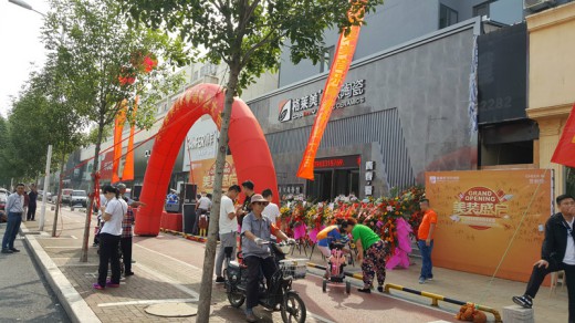 開(kāi)業(yè)當(dāng)日,新店盛況空前,現(xiàn)代范十足的外立面尤為引人注目,門(mén)前舞臺(tái)高筑,人頭攢動(dòng),擺滿了紅紅火火的禮炮和祝賀開(kāi)業(yè)的花籃,可見(jiàn)人氣之高。