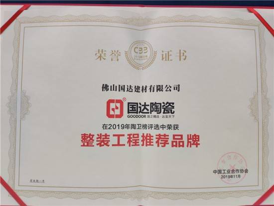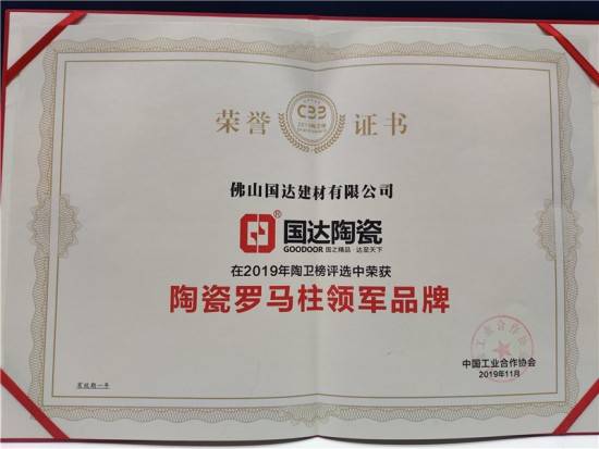 11月2日,由中國工業(yè)合作協(xié)會主辦的“迎戰(zhàn)整裝時代”高峰論壇盛大舉行,國達陶瓷憑著強勁的品牌知名度與創(chuàng)新產(chǎn)品,喜獲“陶瓷羅馬柱領(lǐng)軍品牌”和“整裝工程推薦品牌”兩個重要獎項!