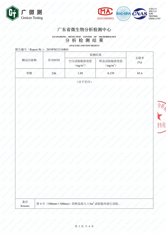 2、宏陶健康凈界瓷磚領創安醛技術,室內甲醛的主動降解效率更高,去除率達到85.4%!