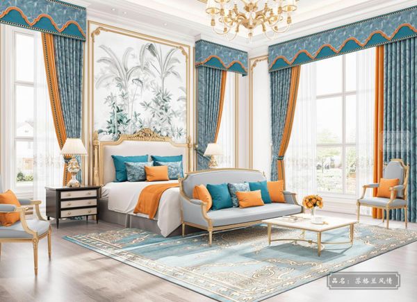 蘇格蘭風格:靈感來自最新流行的國漫之光《哪吒》。暖色系統中的橙色總是與熱情和活力聯系在一起,而冰藍色給人以靜止的第一印象,以藍色和橙色為主的色彩搭配既體現了現代感又體現了傳統感,既有現實感又有復古感。這兩種顏色可以給空間帶來新的生命。