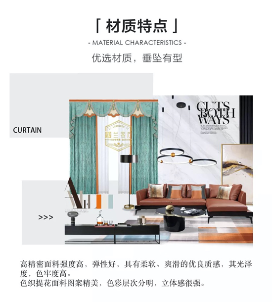 蘭客廳高精密系列窗簾擁有良好隔音效果,隔開外面車水馬龍的喧鬧,給自己一份安靜的休憩時間。高精密系列面料本身保持著迷人的韌性和輕便的質地,它就像一位氣質如蘭的大家閨秀,美麗且有才華,怎么能不讓人喜愛呢?