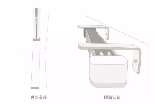 ▲電動(dòng)窗簾兩種安裝方式,一般有窗簾盒頂裝,沒(méi)有窗簾盒采用側(cè)裝