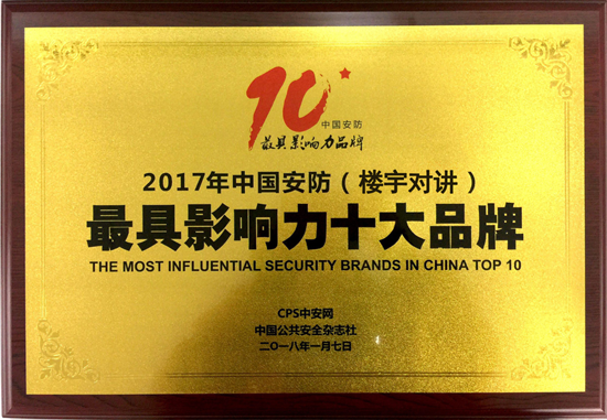 慧銳通榮獲“樓宇對講類最具影響力十大品牌”稱號