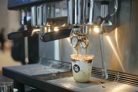 再倒入由WMF專業(yè)咖啡機出品的咖啡
