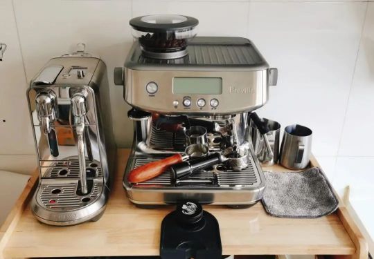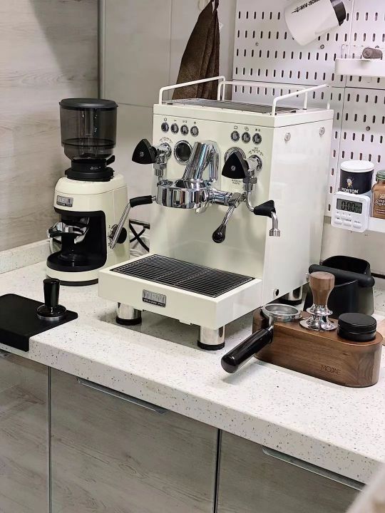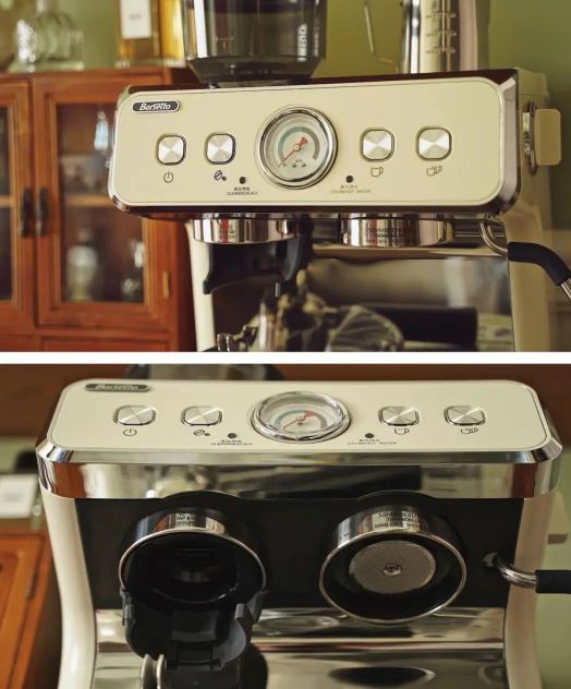 并且配件也比較齊全,壓粉器、硅膠墊、咖啡布,一個手柄還配了兩個粉碗。顏值方面可以說是挺不錯,因為我家是輕復古風格,百勝圖二代的奶白色和我們家就很搭,比較復古的白,可以讓我的咖啡角更溫柔。價格更是很美了,3k+你就可以擁有雙鍋爐并且磨豆萃取一體的機器,那真的是性價比高了,省下來的錢買品質好的咖啡豆它不香么!