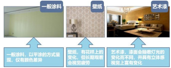 對(duì)比墻紙的種種缺陷,藝術(shù)涂料無論材料質(zhì)感、裝飾效果還是環(huán)保性能,都具有明顯的優(yōu)勢(shì),因此也得到了越來越多業(yè)主的喜愛。