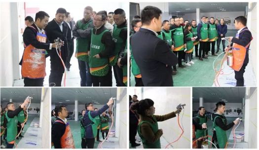 對于涂料行業來說,了解內外墻漆產品相關的基礎知識是非常關鍵的。本次培訓特別安排了內外墻產品知識和工藝流程、水包砂產品上墻實操體驗、藝術涂料施工工藝、功能特點以及產品造價思路的培訓,讓每一位經銷商家人對3A藝術涂料的產品優勢有了全面且深入的學習,從而為每一位客戶提供更加專業的服務。