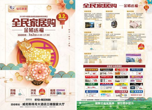 3月2日,由家居建材家電與鉆石聯(lián)盟聯(lián)合舉辦的“全民家居購-金豬送?!被顒?dòng),在威尼斯得月大酒店三樓國宴大廳盛大開幕,為黃岡廣大業(yè)主提供了一場裝修建材的盛宴。