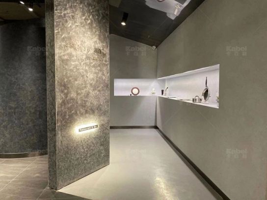 深灰背景,不僅沒有憂郁,恰恰相反,通過明暗關系的變化,達到空間色彩的平衡感。白色能呈現(xiàn)出最自然純粹的本質(zhì),黑色展現(xiàn)藝術與前衛(wèi)的氣質(zhì),而灰色則能體現(xiàn)出內(nèi)斂與沉穩(wěn)的關系。由卡百利藝術涂料打造的空間墻面莊重典雅、觸感柔滑細膩,于細節(jié)處見高貴,深入骨髓的優(yōu)雅,隨處可見,這正是卡百利藝術涂料的魅力所在,讓每一位就餐的人,都能享受在繁華都市中片刻心靈的放松和感官的快樂。