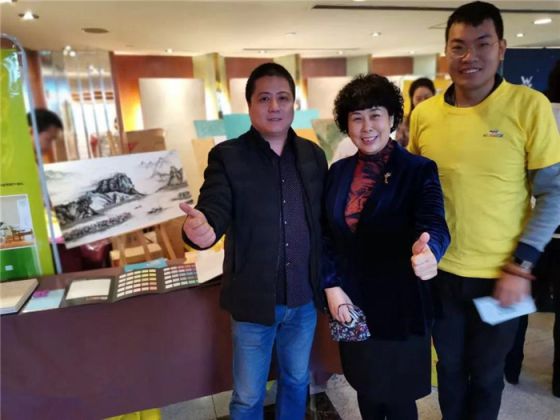 在這過程中,康總(鱷魚彩妝藝術漆西安鵬星建材有限公司)還率領陜西裝修協會執行會長賀榆霞女士一起參觀并講解了產品,鱷魚彩妝藝術涂料出眾的工藝與綠化環保的性能,讓賀會長也禁不住立起大拇指,為產品點贊!