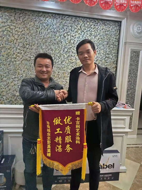 后來,渴望轉型的他,在了解了藝術涂料行業的巨大潛力后,毅然投入到藝術涂料行業中來,其中,在對品牌的考察過程中,某藝術涂料品牌的招商經理一直在聯系,在準備簽正式合同之前,通過一個偶然的機會知道了卡百利藝術壁材,在不斷的了解過程中,饒澤銘發現卡百利的產品體系、培訓體系、服務體系,都是他這種行業外人士最適合的創業首選,最后他義無反顧的選擇了卡百利品牌。