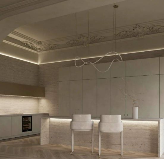 開放式廚房的設(shè)計,線條簡潔明朗,一半是煙火氣,一半是儀式感,一如法式風(fēng)格優(yōu)雅又不失品質(zhì)的態(tài)度,打造低調(diào)、舒適,卻無損高貴與雅致的生活。