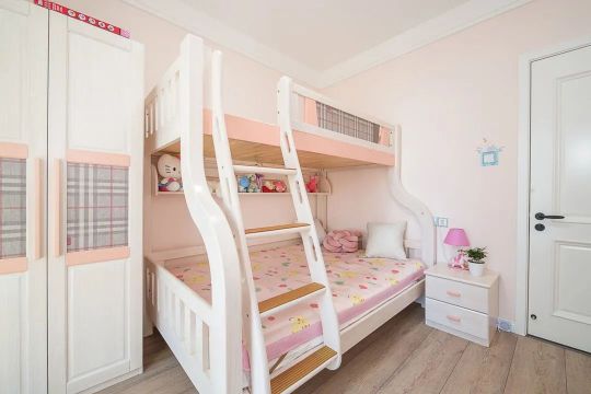 考慮到是女孩,兒童房則以藝術(shù)涂料的粉色為主,加入一些灰色降低飽和度,避免太過粉嫩,不適用于孩子成長之后的年齡段。家具不論是色彩還是格調(diào)都和兒童房風(fēng)格很般配,整體簡潔耐看很溫馨。