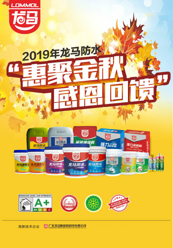 據(jù)悉,2019“惠聚金秋”主題活動將持續(xù)至12月上旬,而主題活動政策也是優(yōu)惠至今年12月30日。這時的龍馬防水材料正繼續(xù)前行,擴大勝果,獲取更為輝煌的明天,為2019年劃上一個完滿的句號!