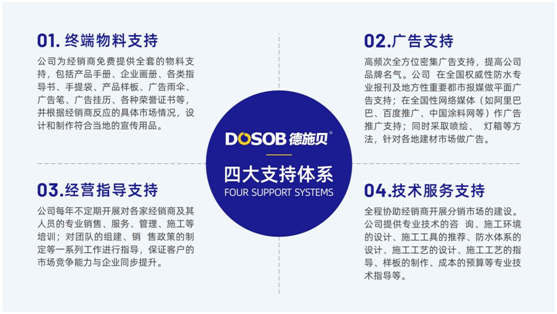 在選擇加盟品牌的過程中,除了考慮產品品質、企業實力等,企業對經銷商的幫扶也是加盟者衡量一個品牌可靠程度的關鍵點。德施貝擁有4大支持政策,這無異于給經銷商們吃下了一顆“定心丸”。
