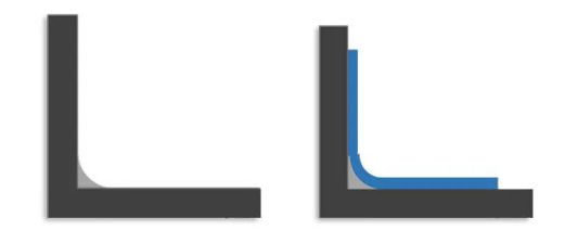 陰角、管根、落水口位置涂膜厚度遠大于平面涂膜厚度。