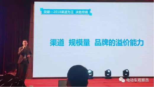 銷售總經理宗總好比航海的掌舵手,對營銷體系的各個環節因時制宜的作出戰略調整和部署,洪都能夠實現銷量翻番的增長,他是當之無愧的最大功臣。整場會議,宗總運用宏觀的大思維,對終端渠道的重要性進行有針對性的分析。拆分2018年,化整為零,季度性闡述了2018年的重大營銷動作,并提出了洪都電動車三年沖刺50萬銷量的目標。